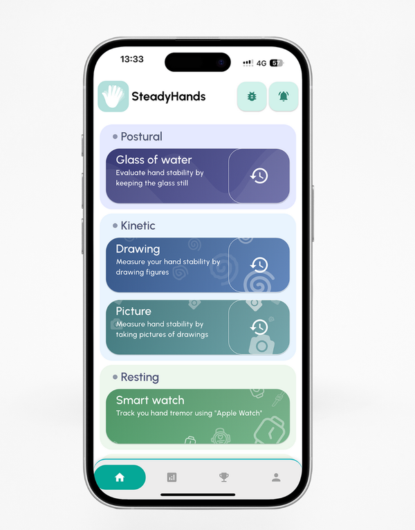 Verfolgen Sie die Handruhe und beobachten Sie Ihre Fortschritte im Laufe der Zeit. Einfache Anwendung – optional, nicht erforderlich.