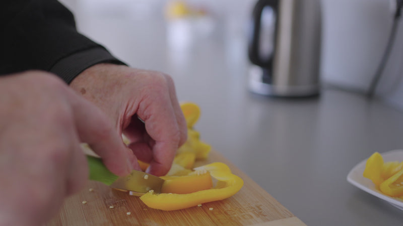 „ Früher war die Zubereitung von Mahlzeiten eine Herausforderung, vom Gemüseschneiden und Brotschneiden bis hin zum Hantieren mit heißen Töpfen und Pfannen. Aber seit ich den VILIM-Ball benutze, kann ich wieder viel sicherer und souveräner kochen.“ – Liz, 50