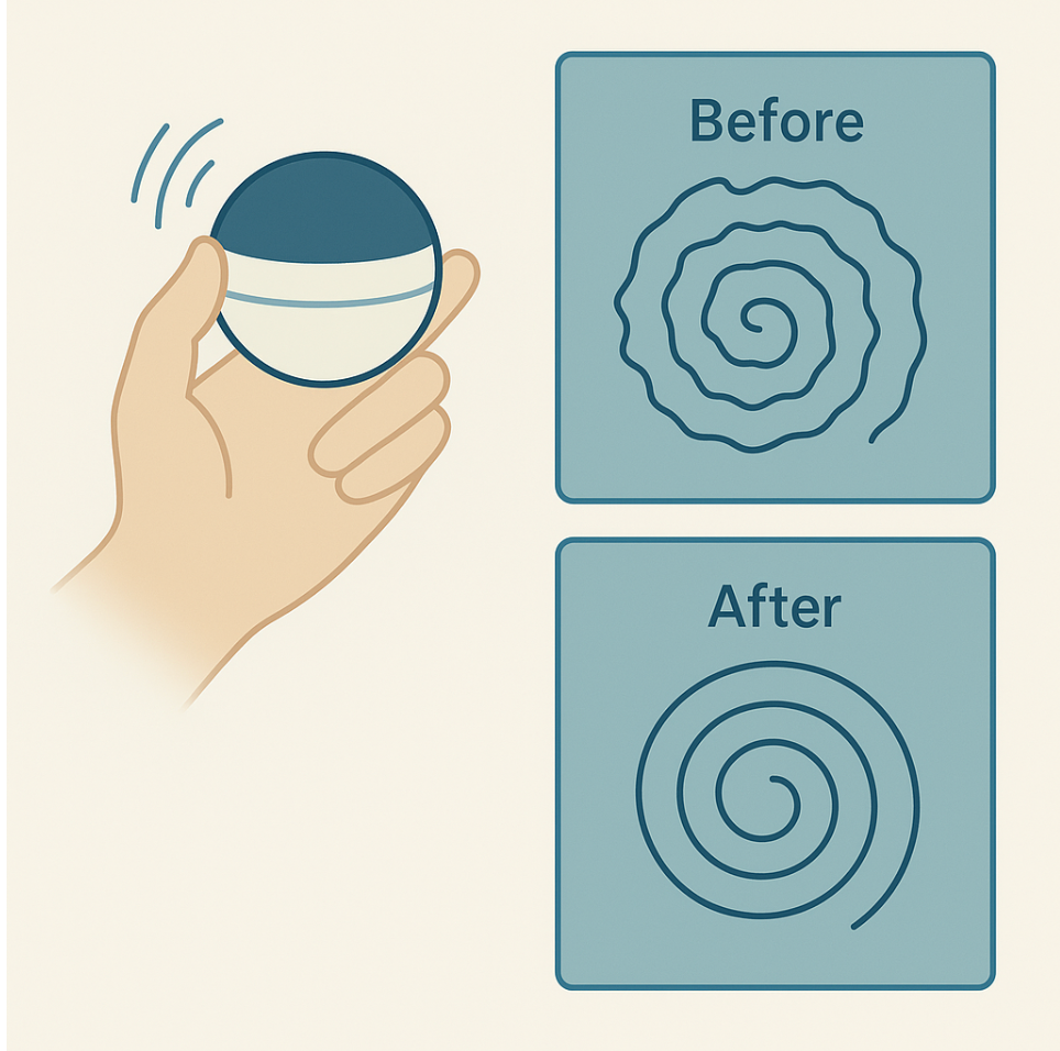 Tyrimai rodo, kad VILIM kamuoliukas veiksmingai mažina rankų drebėjimą, o tai patvirtina Archimedo spiralės piešiniai. Lygios spiralės rodo, kad drebėjimo nėra, o banguotos – kad jis pasireiškia. Mūsų tyrime, naudojant VILIM kamuoliuką, spiralės tapo lygesnės, kas patvirtina jo gebėjimą sumažinti rankų drebėjimą.